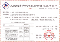 A級工業(yè)設(shè)備化學(xué)清洗資質(zhì)證書